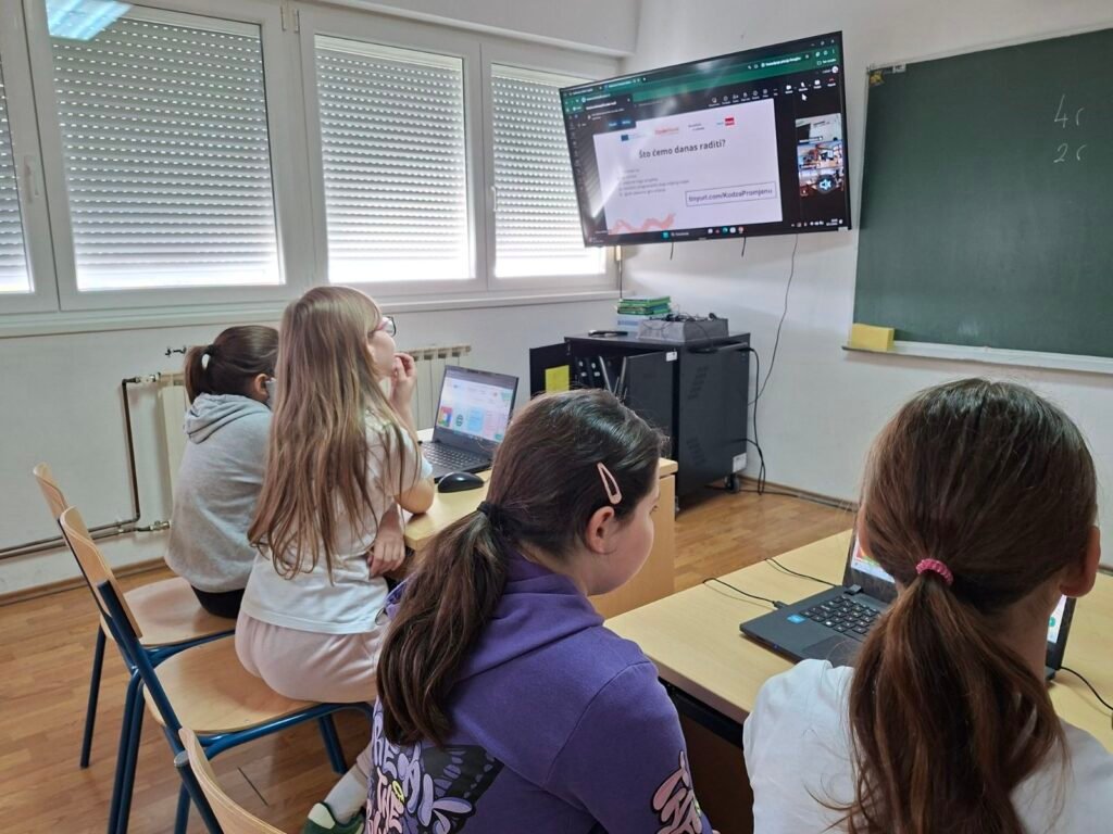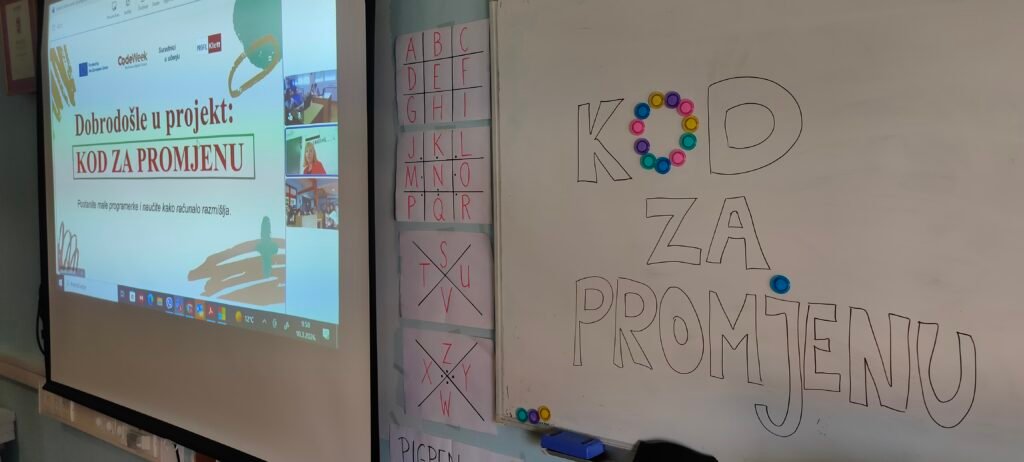 U okviru projekta „Kod za promjenu“, koji je prijavila Udruga Suradnici u učenju uz potporu inicijative EU Code Week, održana je uvodna online radionica na kojoj su se prvi put susrele učenice Prve osnovne škole Ogulin i Osnovne škole Matija Gubec Cernik. Radionicu su vodile učiteljice Valentina Blašković i Kristina Slišurić, a cilj susreta bio je upoznavanje učenica i predstavljanje aktivnosti koje ih očekuju tijekom projekta.