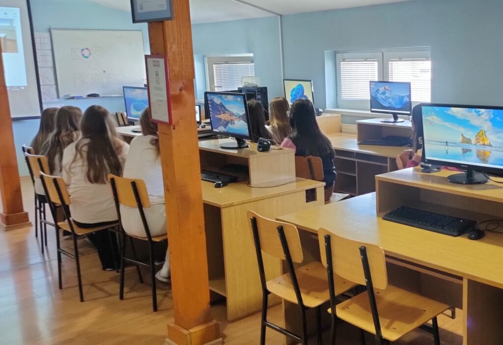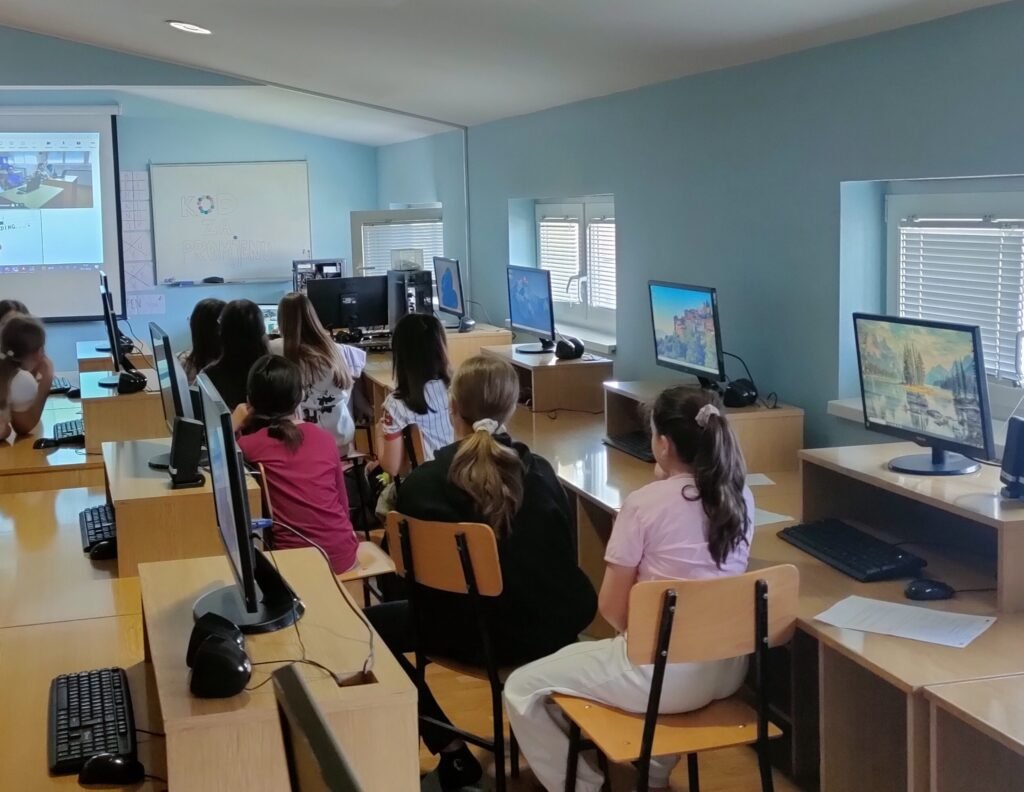 Kroz različite interaktivne aktivnosti učenice su se predstavile jedna drugoj, sudjelovale u kratkim igrama upoznavanja te razgovarale o svojim interesima i očekivanjima od projekta. Tijekom radionice učenice su sudjelovale i u kratkom Kahoot kvizu, glasanju za logo projekta te kreativnim aktivnostima na Padletu gdje su osmišljavale i crtale „programerku koja mijenja svijet“. U opuštenoj i poticajnoj atmosferi učenice su napravile prve korake u upoznavanju i suradnji te započele svoje zajedničko putovanje u svijet programiranja i digitalnog stvaranja.